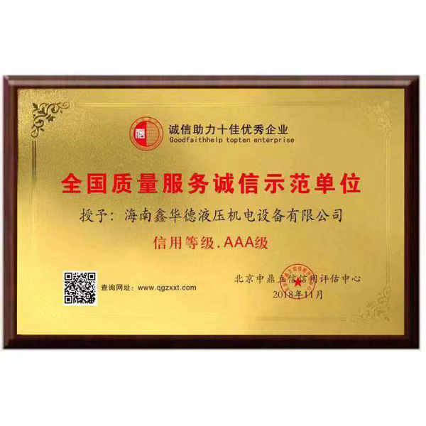 全國(guó)質(zhì)量服務(wù)誠(chéng)信示范單位